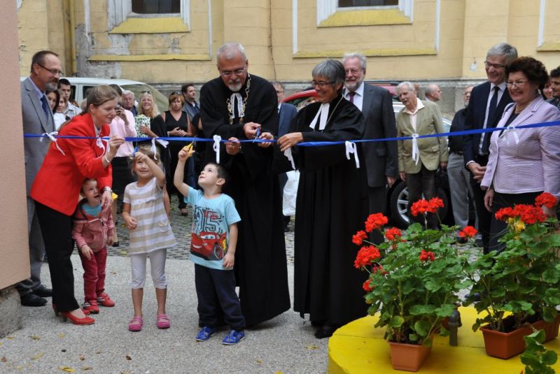 The church kindergarten in Cheb was festively opened on Thursday the 17th of September. It happened with a ribbon cutting with scissors in the hands of the children as well as in the hands of the representatives of the Evangelical Church of Czech Brethren and the Lutheran Church in Bavaria. The “Kindergarten without borders” is a mutual project of both churches and will be run under the supervision of the ECCB Diaconia.