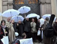 The organizers, Cubans living in the Czech Republic, and many guests came together at Křižovniské náměstí (Knights of the Cross Square) near Charles Bridge. Moderator Joel Ruml madea short speech and the theologian Tomáš Halík contributed an introductory message. Words about the significance of the events in the Crimea could be heard. Bishop Václav Malý blessed the then forming procession which went across Charles Bridge to St. Thomas Church in the Lesser Town. The procession, with white balloons and white umbrellas symbolized support for the "Damas de Blanco", the Ladies in White. This is an association of women, mothers, sisters and daughters of political prisoners in Cuba, who meets regularly in Havana. They draw attention to their difficult situation through peaceful demonstrations, they dress in white and carry white flowers. Vice moderator, Pavel Kašpar, preached at the ecumenical service. The intercessions for Christians and non-Christians in Cuba and for peace around the world were symbolized by the lighting of candles. At the end of the service a collection was taken to support the work with children in Cuba.