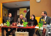 On Tuesday, 1st March, the representatives of the Church district of Bayreuth, of the West-Bohemian presbytery and of the synodal council met in Pilsen for a continuation of the discussions about cross-border cooperation in this region. The meeting took place, with a very pleasant atmosphere, in the Diakonia institution 'Kačaba', a coffee and tearoom which offers an on the job training program for mentally disabled people. The Right Rev. Dorothea Greiner, bishop for the Bayreuth district came, together with other representatives, to Pilsen. Also the new head of the Church's educational retreat center in Bad Alexandersbad, Andreas Beneker, took part in the meeting. The Czech side was represented by Radek Matuška, for the synodal council and representative for the parish in Cheb and the Rev. Petr Chamrád for the presbytery. The latter is, at the same time, also the chaplain to the, mainly German, spa tourists and interpreted the whole day between the two groups readily and reliably. Also moderator Joel Ruml and the head of the department for ecumenical relationships, Gerhard Frey-Reininghaus, supported the meeting with their presence.