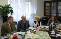 On 1 February 2013 the ECCB welcomed visitors from the Church of Scotland. The two Churches have worked together for many years and this meeting was, in part, a celebration of that partnership. The ECCB hosted four visitors: The Very Rev Albert Bogle, Moderator of the General Assembly of the Church of Scotland, and his wife Mrs Martha Bogle; Rev Susan Brown, Minister of Dornoch Cathedral & Chaplain to the Queen in Scotland; and Rev Ian Alexander, General Secretary, World Mission Council, Church of Scotland. After a devotion given by ECCB Moderator Rev. Joel Ruml we went on to introductions. In addition to those named above other participants included; the Rev. Gerhard Frey-Reininghaus, head of the Ecumenical Department of the ECCB, and other members of that department including Daniela Hamrová and me as the PCUSA Mission Coworker. We were also joined by others from the Central Church Office including; Lia Valková Lay Moderator, Martin Kocanda Head of the Central Office, and Daniela Ženatá Chief Editor of Česky Bratr. Rev. Štěpán Janča, pastor in Orlova also joined us since his congregation has a partnership with a congregation in Scotland.